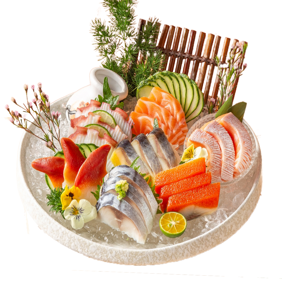 Phù hợp cho 2 người ăn. Bao gồm: Sashimi mix, cuộn Tôm tempura phủ bơ, cuộn Cá hồi nướng tái