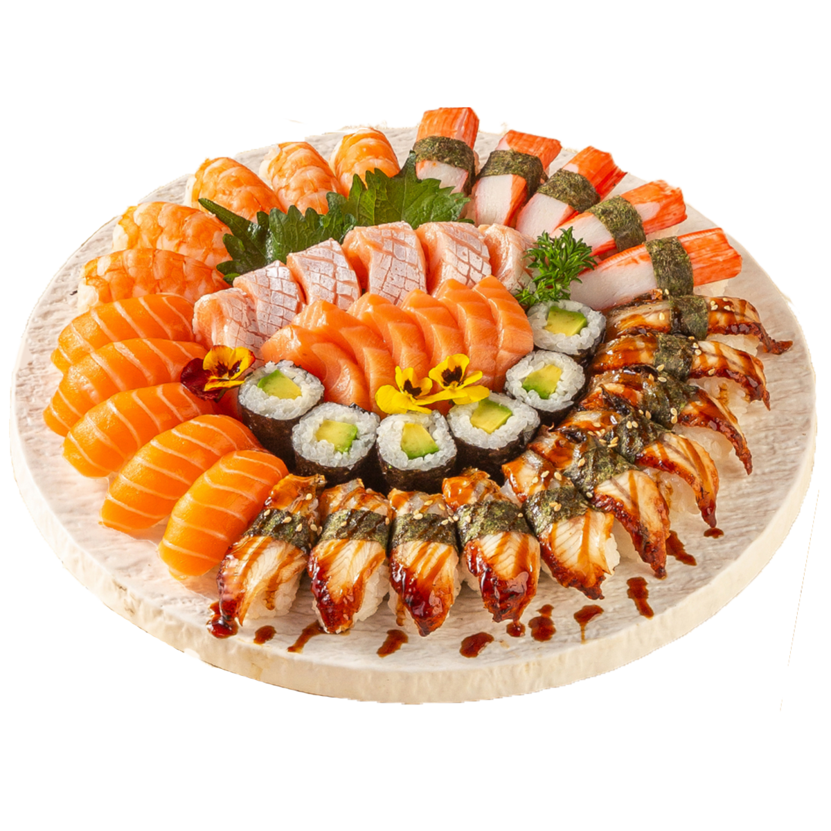 Phù hợp cho 2-3 người ăn. Bao gồm: Sashimi mix, cuộn California cá hồi phủ cá hồi, cuộn California cá hồi phủ lươn