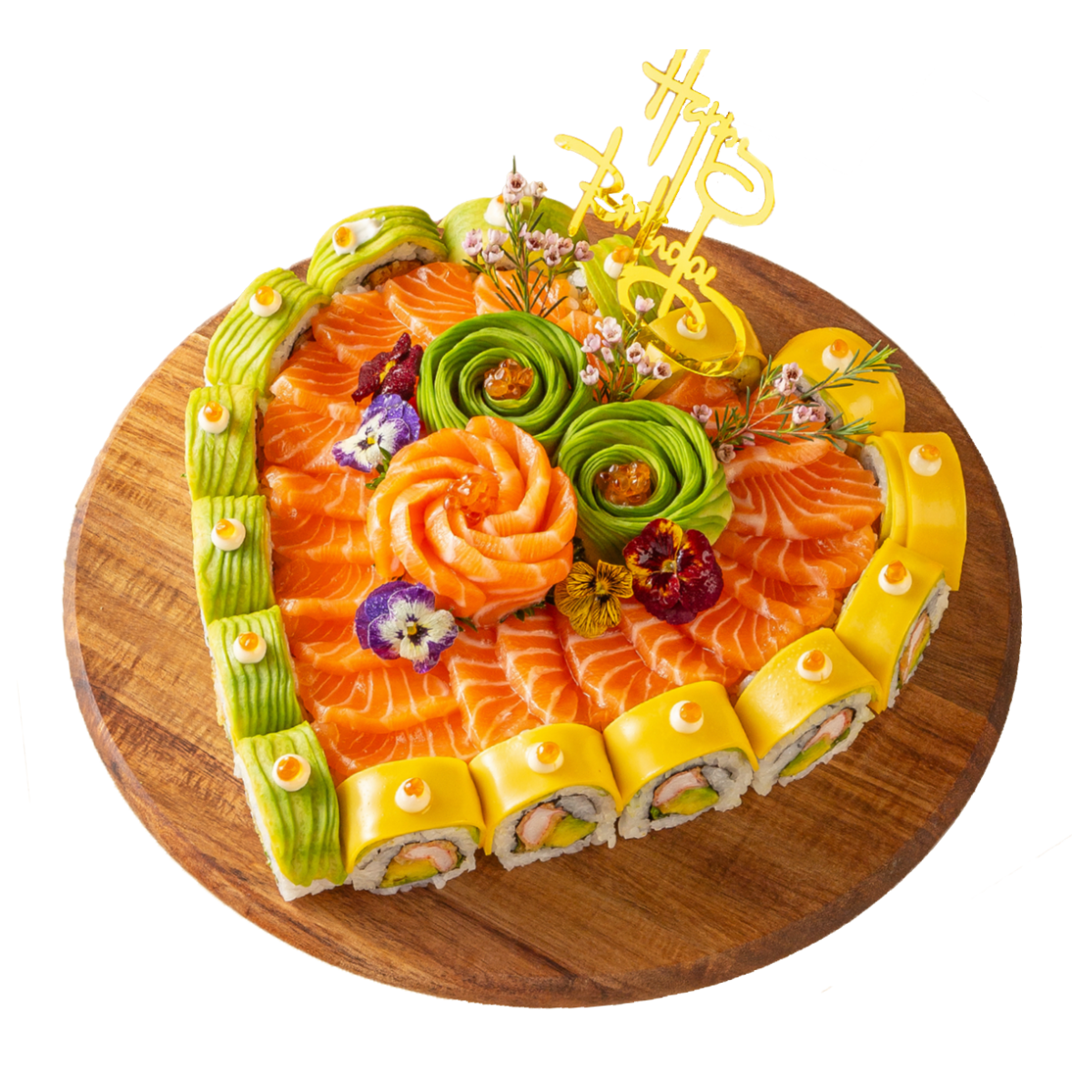 Phù hợp cho 2 người ăn. Bao gồm: Sashimi cá hồi, Cuộn california bơ phủ cá hồi sốt cay, Trứng cá hồi